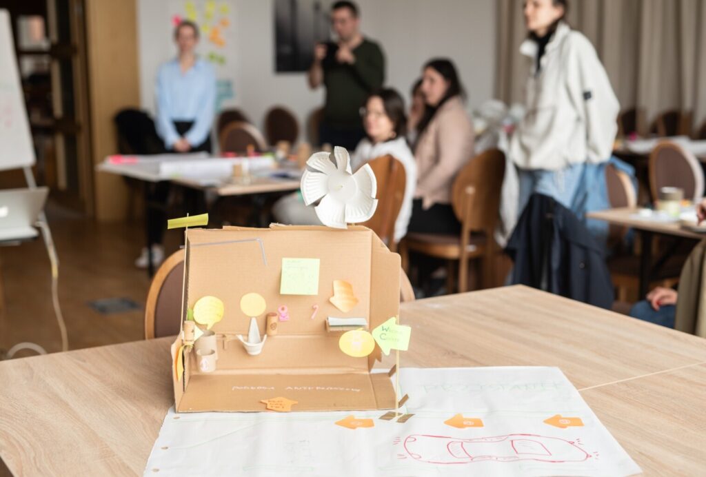 The creative work tools we learned, such as brainwriting, the breaking technique, mind mapping, the lotus blossom technique, and storyboarding, along with the SCAMPER method, allowed us to reach the prototyping stage, of which all the training participants are extremely proud.